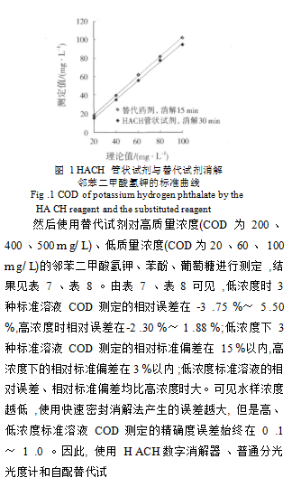 (2)使用 HACH 數字消解器、普通分光光度計和自配替代試劑進行 COD 的測定,將消解時間由 2 h 減少** 15 min ,縮短了分析時間,降低了費用。