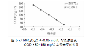 7 )=0.02 mol/L,COD 為 10~50 mg/L 時, 水樣 COD 與吸光度