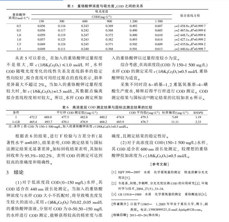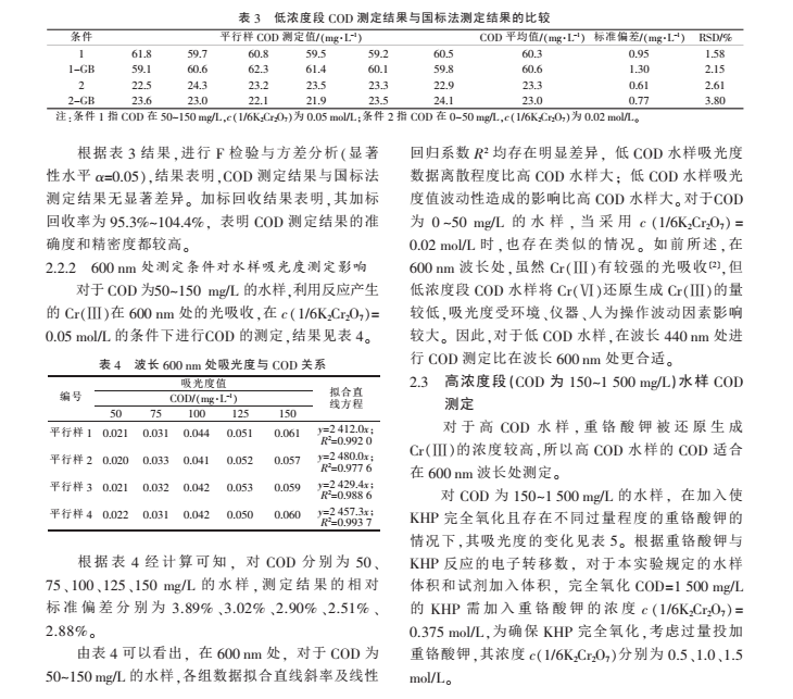2008 年*家環(huán)境保護總局發(fā)布了《水質(zhì) 化學需氧量的測定 快速消解分光光度法》,將 15~1 000 mg/L 的 COD 劃分為 2 個濃度段, 雖然每個濃度段 COD