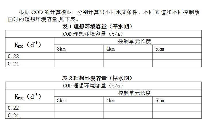 COD屬于可降解污染物用一維模型計(jì)算理想環(huán)境容量,對(duì)于點(diǎn)源排放,令混合后水質(zhì)濃度C等于水質(zhì)標(biāo)準(zhǔn)CS,由下式可計(jì)算河流的允許納污量: