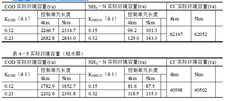 理想環(huán)境容量中扣除非點(diǎn)源污染物入河量后為實(shí)際環(huán)境容量,污染源調(diào)查中調(diào)查了老縣河匯水區(qū)面積、徑流量、徑流水質(zhì),并計(jì)算了面源污染物入河量(見(jiàn)表3-7),將整個(gè)匯水區(qū)內(nèi)(65km)面源污染物入河量按比例折算為控制單元內(nèi)面源污染物入河量,各控制單元理想環(huán)境容量扣除相應(yīng)面源入河量得到各控制單元實(shí)際環(huán)境容量。見(jiàn)表4-3.