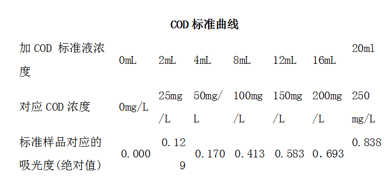 在440nm±20 nm 波長處測定時,水樣COD 的計算: