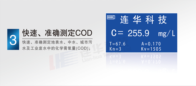 (01) 能準確測定地表水、中水、城市污水、工業(yè)廢水中化學需氧量(COD),濃度直讀;