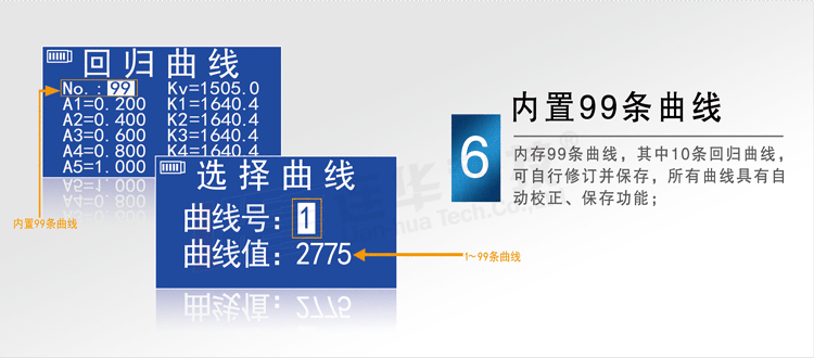(05) 曲線:99條、10條回歸曲線,所有曲線具有自 動校正并保存功能
